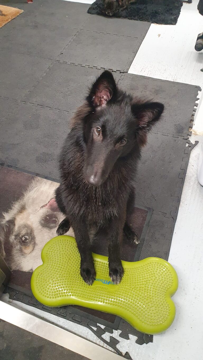 Tijdens deze sessies werken we zowel aan het verbeteren van het evenwicht van de hond als aan het vergroten van zijn lichaamsbewustzijn. Veel honden weten eigenlijk niet goed wat hun lichaam kan of waar hun grenzen liggen. Dat kan soms leiden tot blessures of onzekerheid bij het benaderen van toestellen of onbekende objecten.