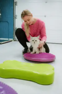 Dit aan de hand van balansborden en balanskussens, cavaletti’s, loopband, oefeningen, …